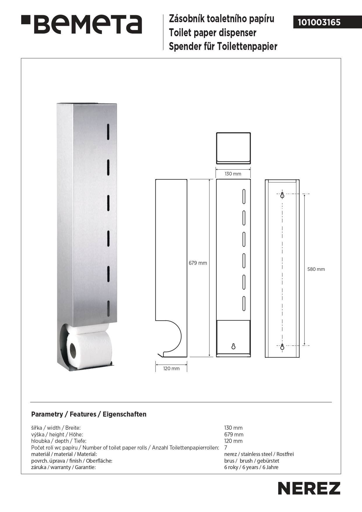 101003165 Диспенсер для 7-ми рулонов туалетной бумаги, нерж. сталь, мат