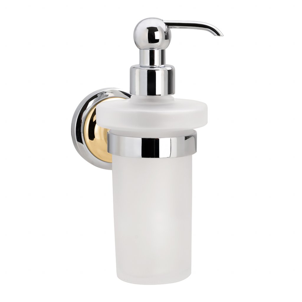 144209018 Дозатор для жидкого мыла Retro настенный 300 ml 75x180x140мм, золото/хром