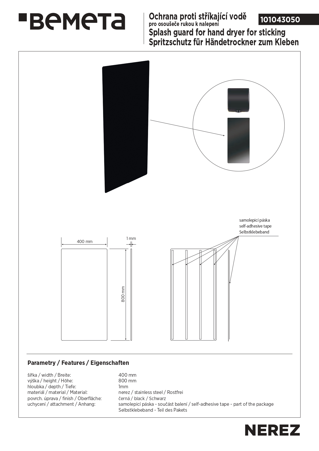 101043050 Брызговик для сушилки для рук, нержавеющая сталь, BLACK