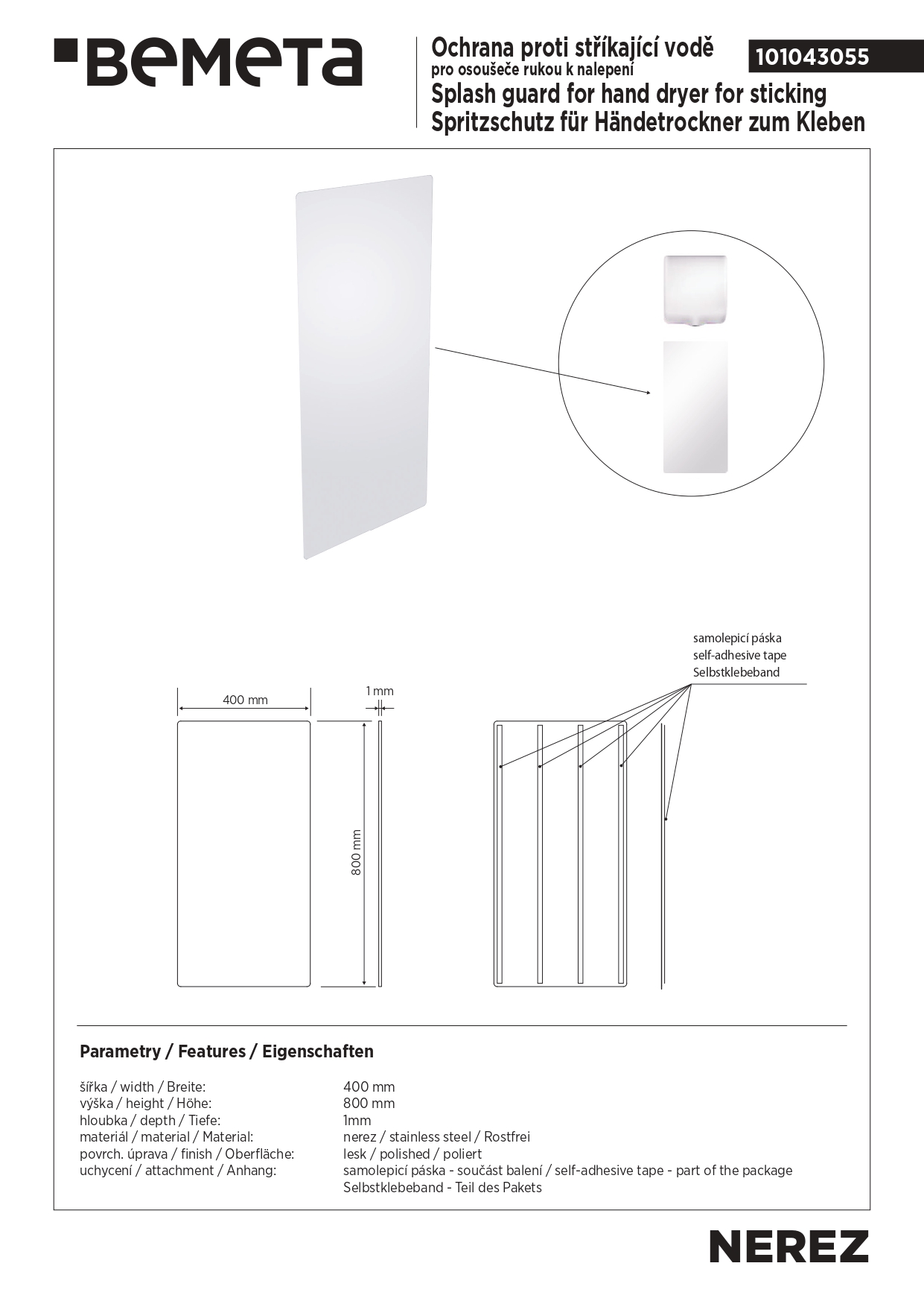 101043055 Брызговик для сушилки для рук, нержавеющая сталь, полированный