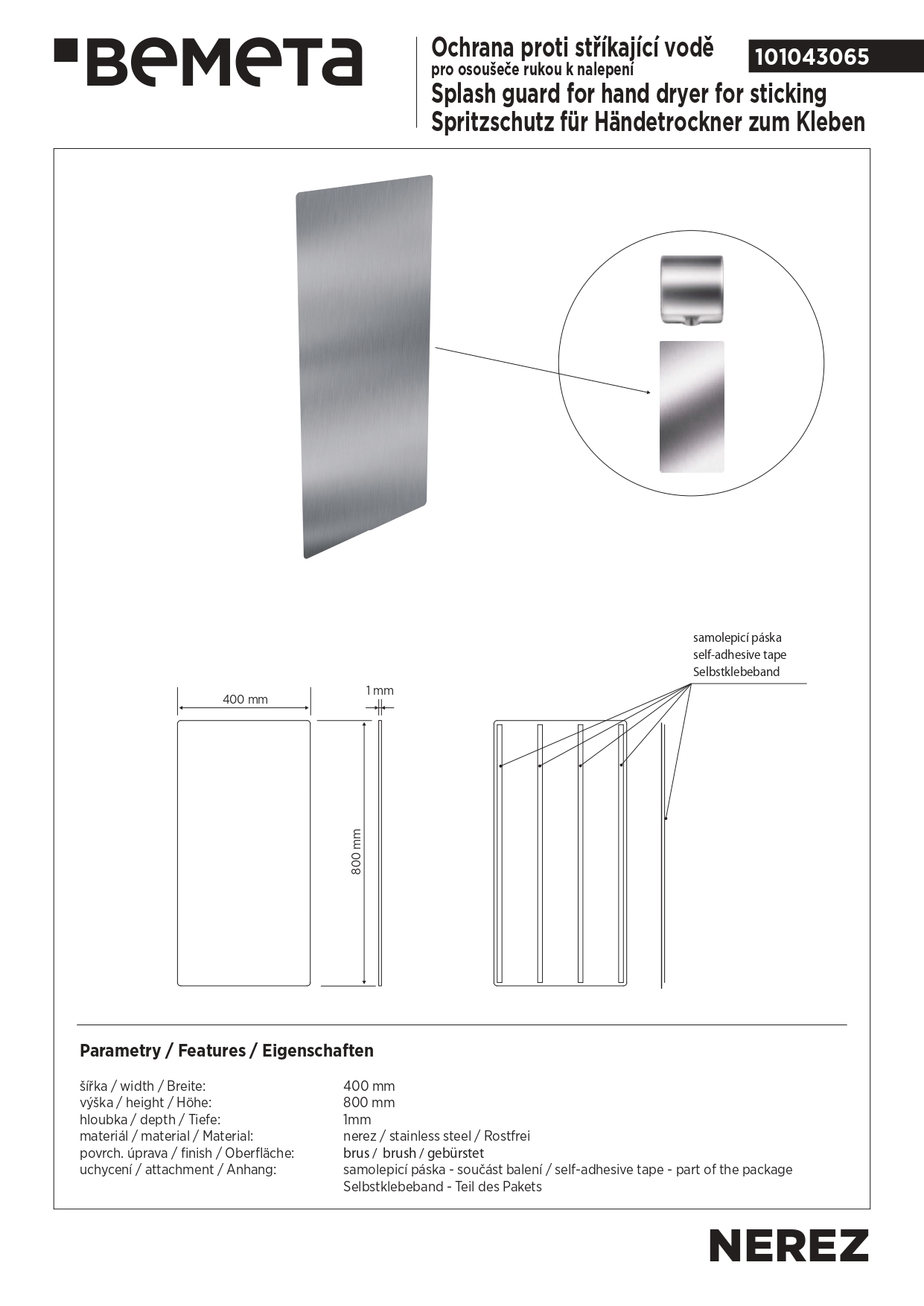 101043065 Брызговик для сушилки для рук, нержавеющая сталь, матовый