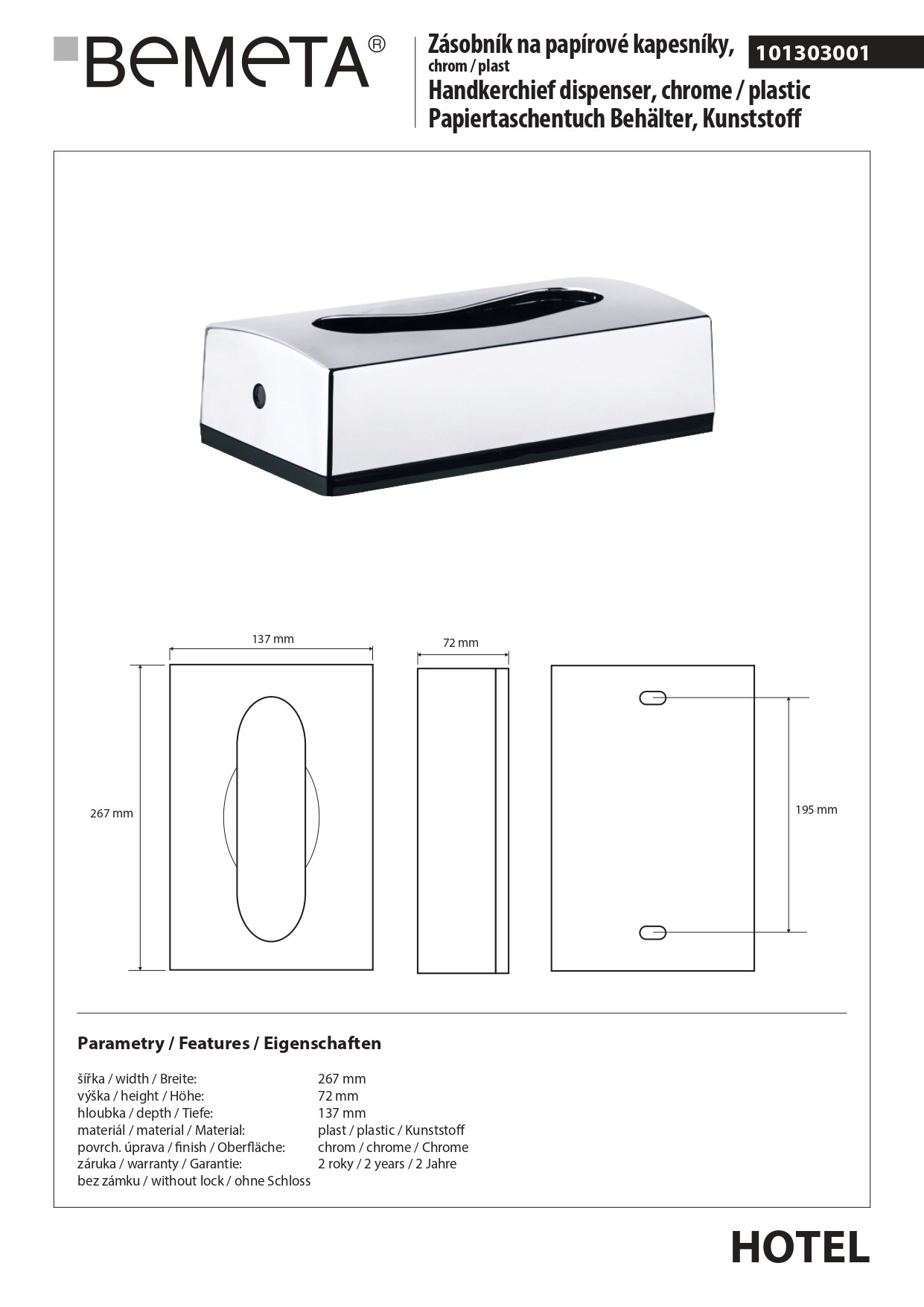 101303001 HOTEL Держатель для салфеток, хром