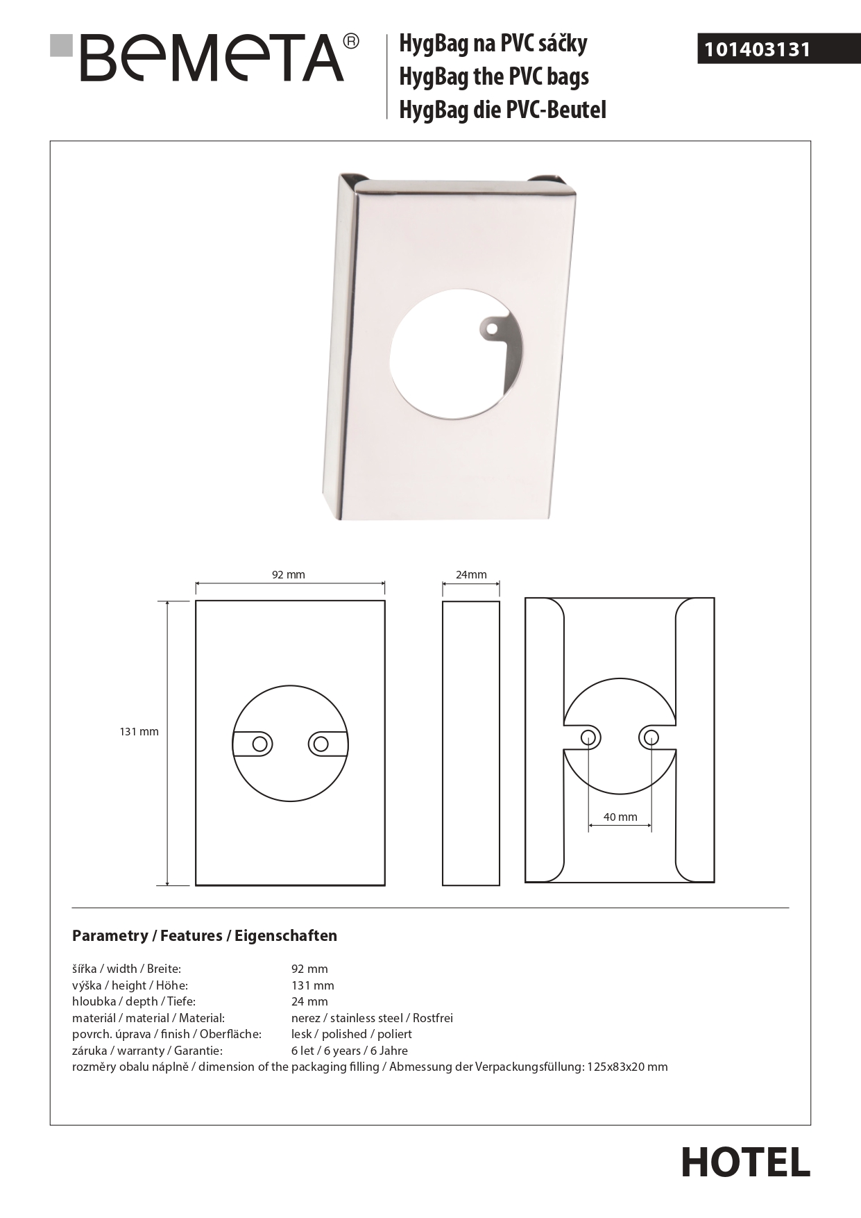 101403131 HOTEL Держатель встроенный для пластиковых мешков, хром