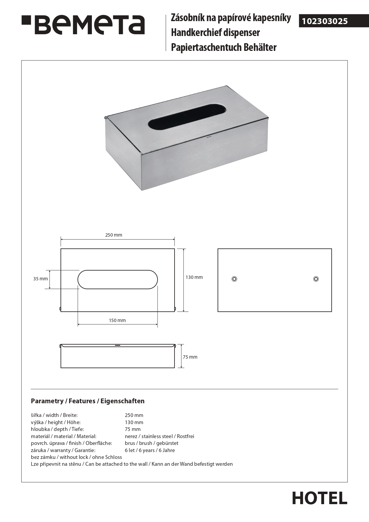 102303025 HOTEL Диспенсер для салфеток kleenex, 250x130x75 мм, мат