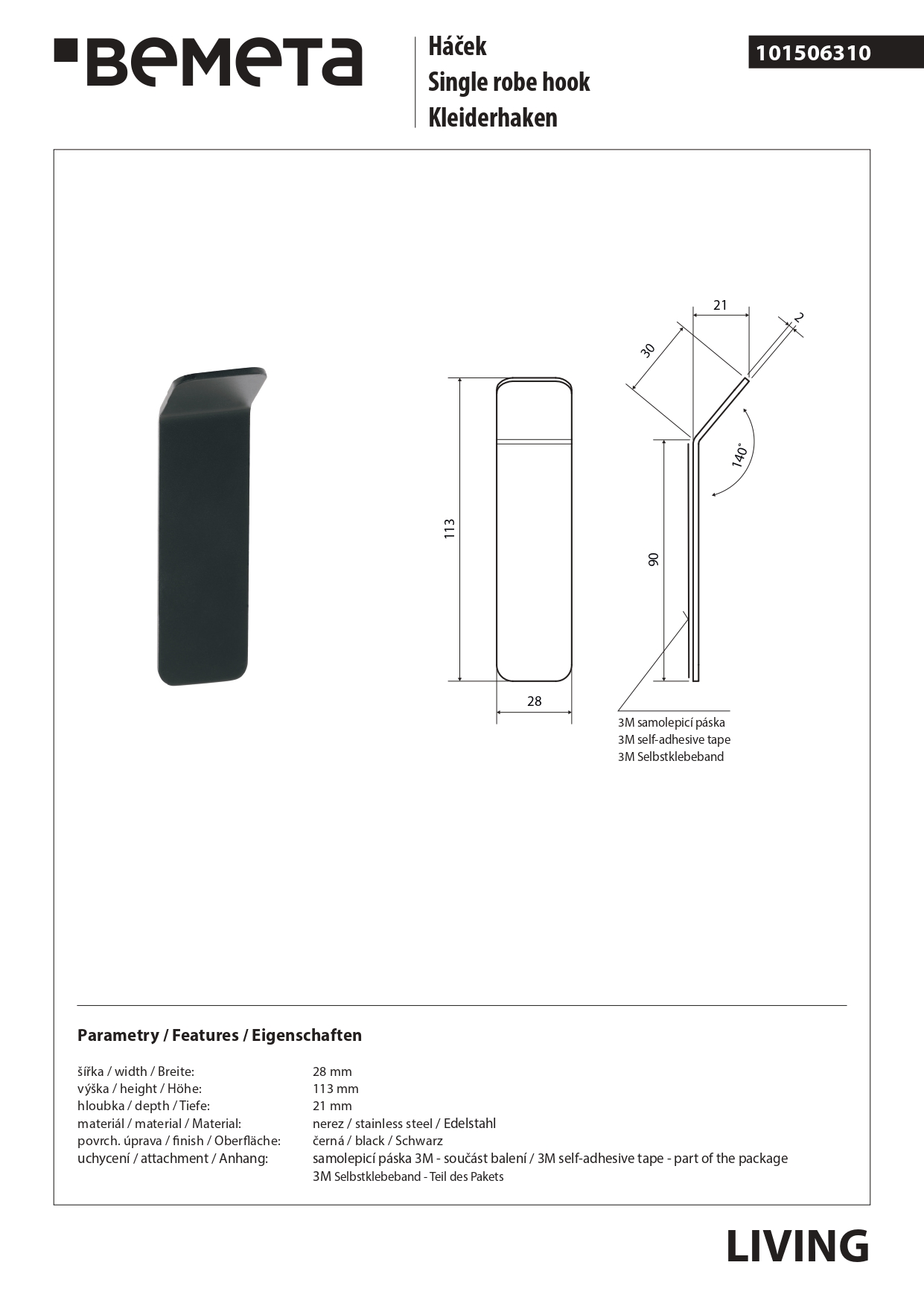 101506310 LIVING: Крючок, нержавеющая сталь, черный