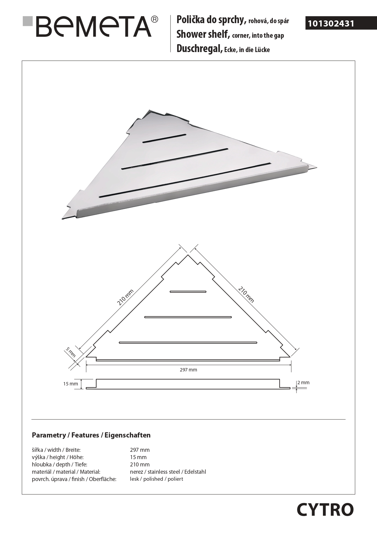 101302431 CYTRO: Душевая полка, блеск