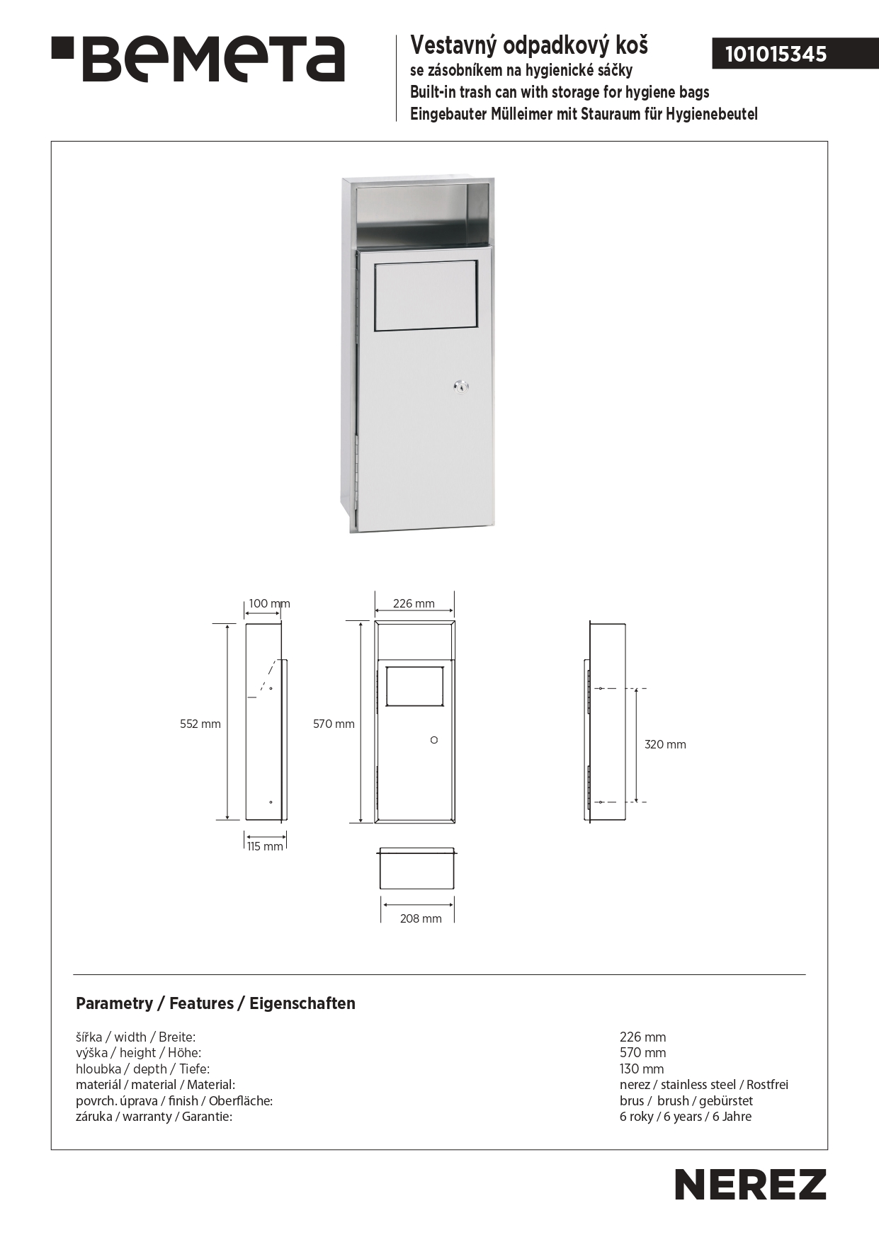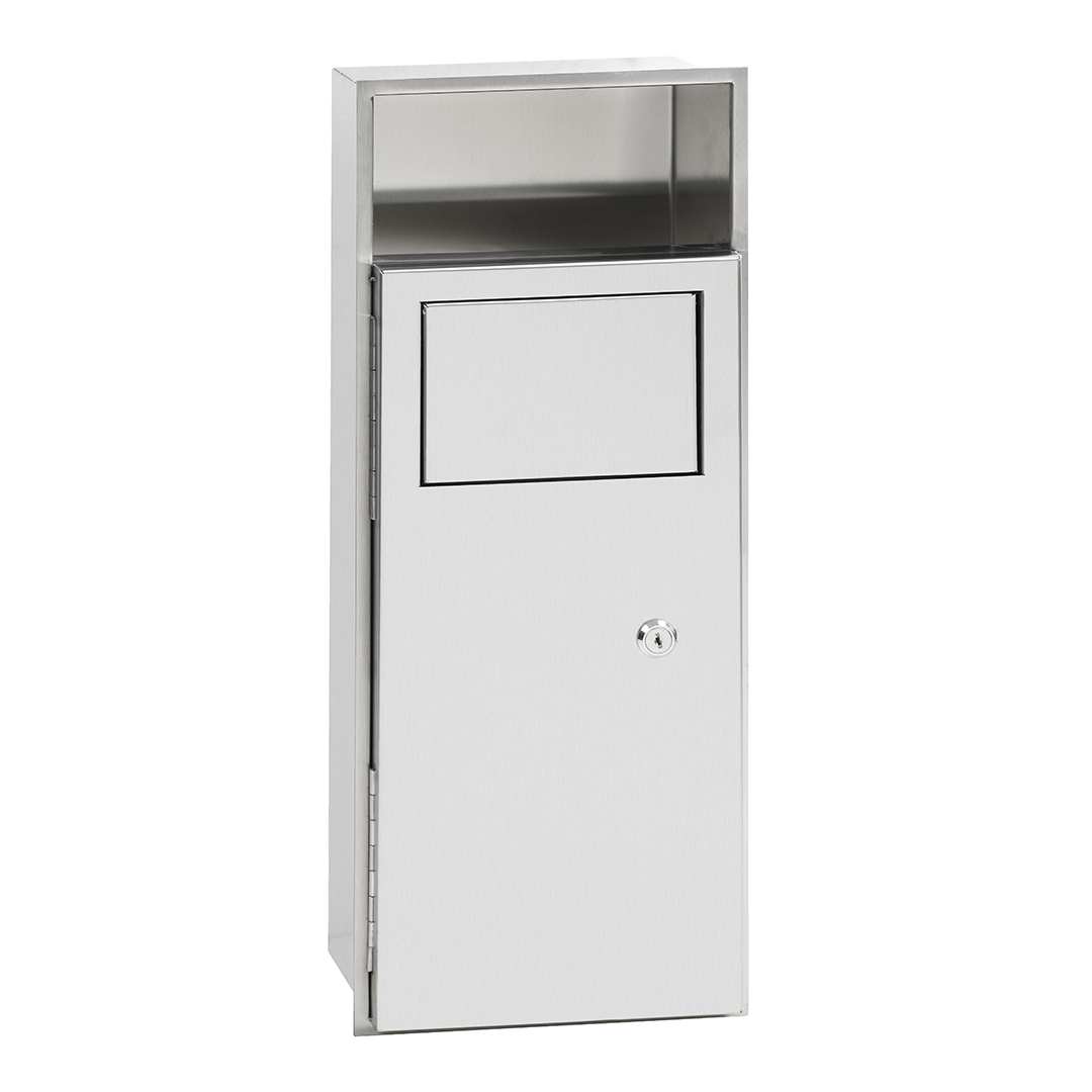 101015345 Встраиваемый контейнер для мусора с полочкой для гигиенических пакетов, нерж. сталь, мат