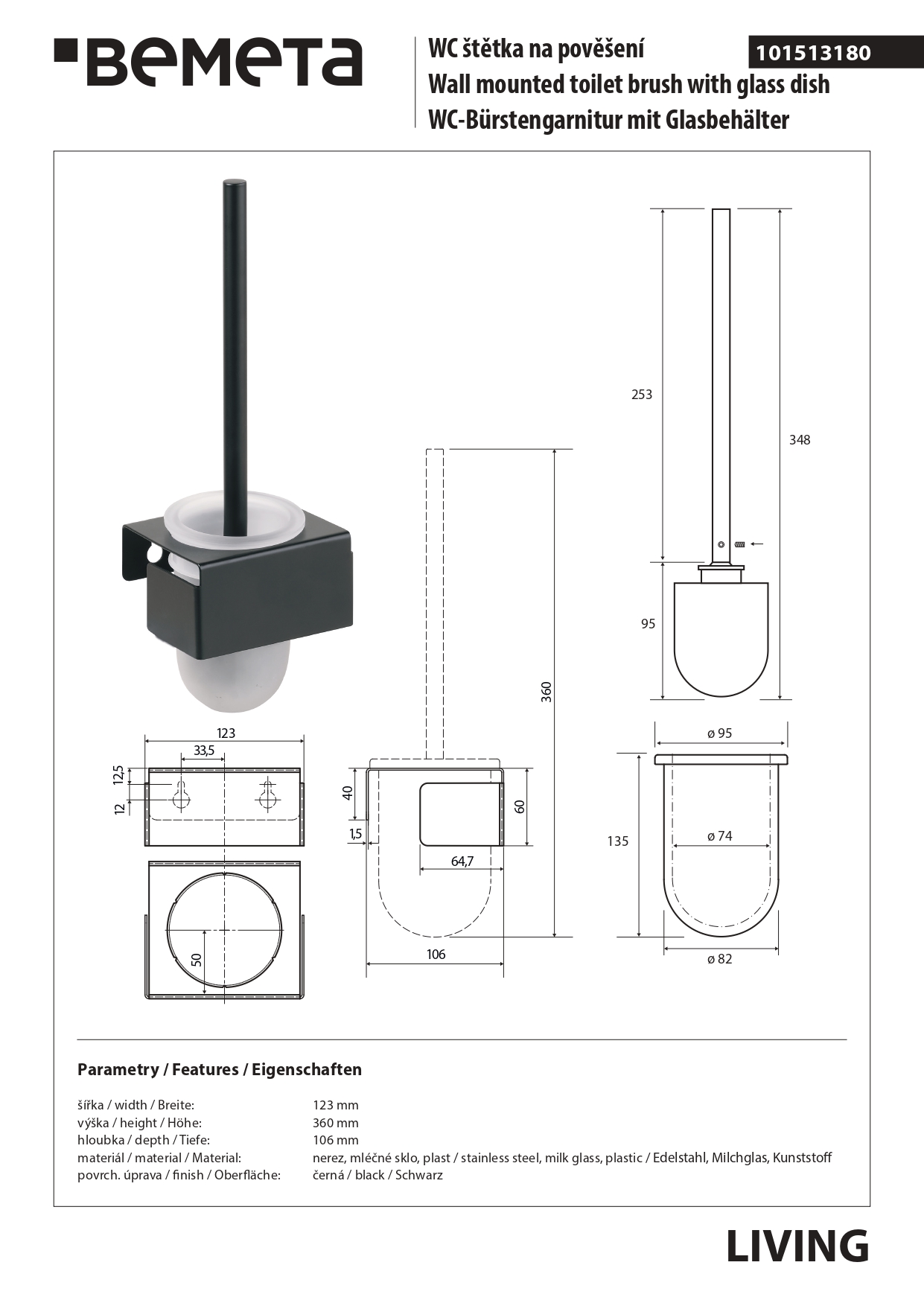 101513180 LIVING: Ёршик подвесной, нержавеющая сталь, черный