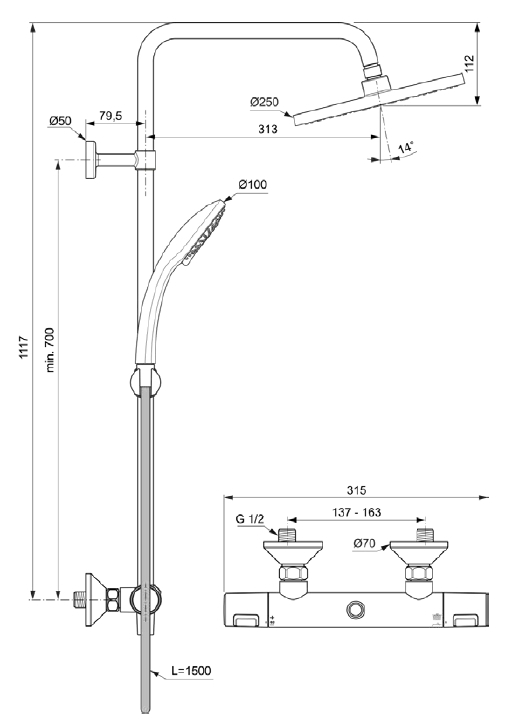 A7627AA CERATHERM T25 душевая система HD/250 Chrome (Хром)