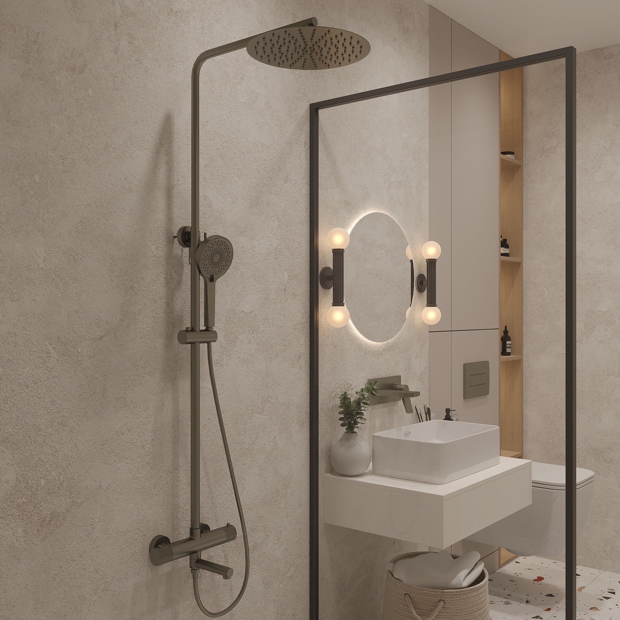 OL-739902-BGM Душевая стойка с термостатом Oliveeka Y, оружейный металл