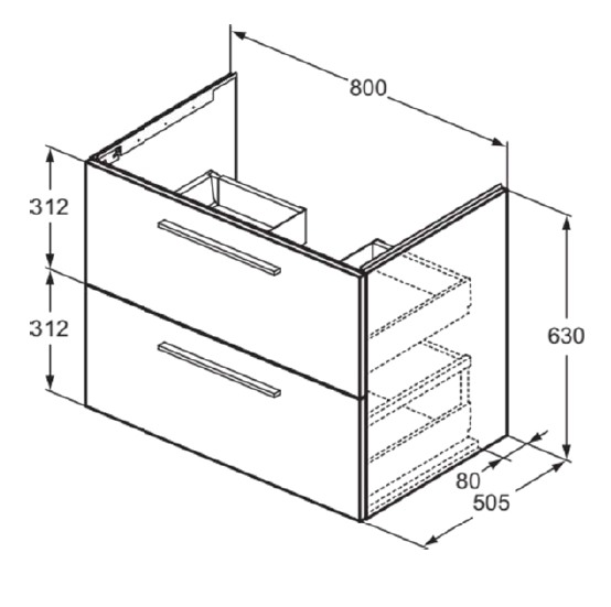 i.Life B Тумба для раковины 80 см для подвесного монтажа, с 2-мя ящиками, система плавного закрытия, ручки в комплект не включены (заказываются дополнительно), с крепежом.