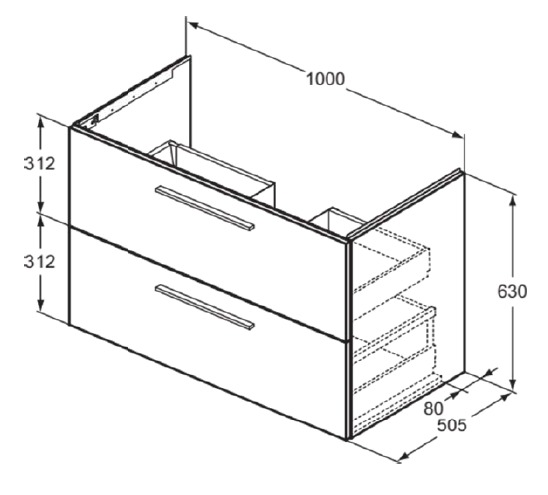 i.Life B Тумба для раковины 100 см для подвесного монтажа, с 2-мя ящиками, система плавного закрытия, ручки в комплект не включены (заказываются дополнительно), с крепежом.
