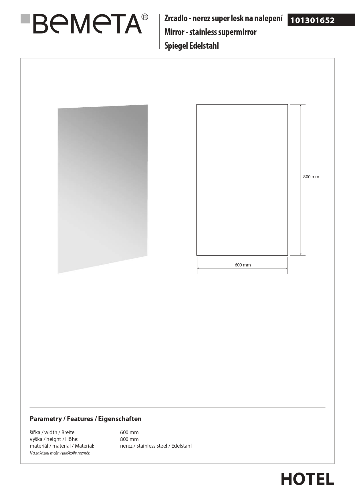 101301652 HOTEL Зеркало - нержавеющая сталь 60х80см