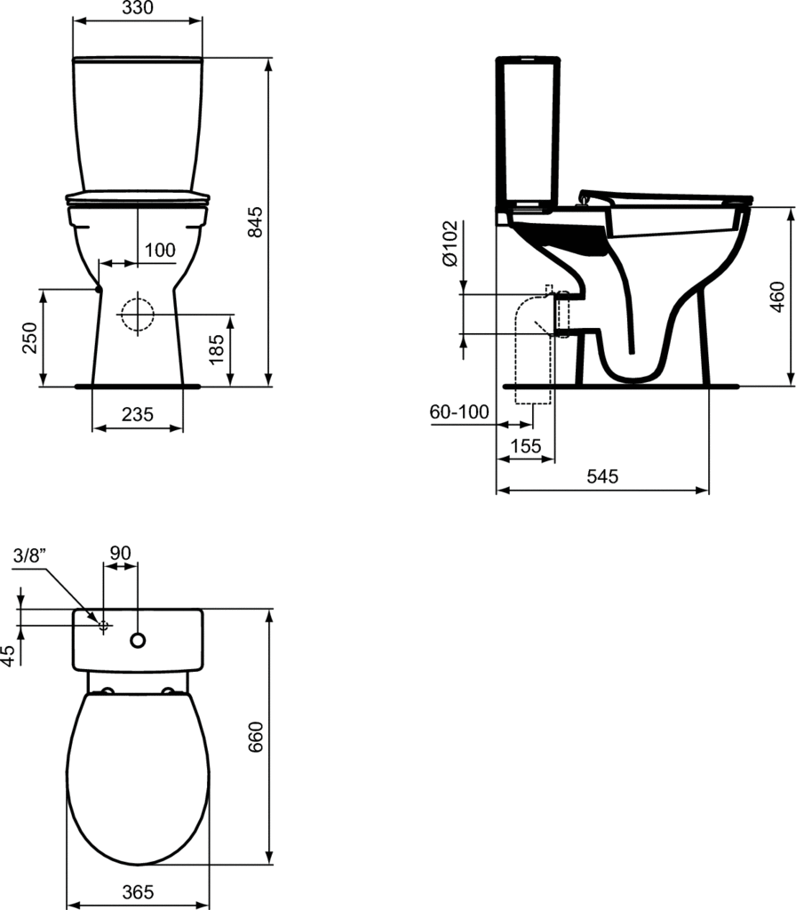 W328001 EUROVIT Бачок для унитаза W328901, нижняя подводка, двойной смыв 4,5/3л