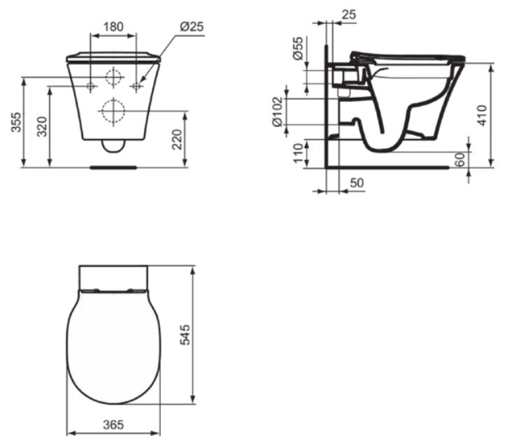 CONNECT AIR RIML+ Безободковый подвесной унитаз, с сиденьем и крышкой с функцией плавного закрытия E036801, с крепежом TT0299598