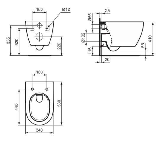 T568001 I.LIFE O Подвесной унитаз с технологией смыва HydroTwist, глубокий смыв, с крепежом EasyFix+ Top fixation TR16667 для полностью скрытого монтажа. Сиденье и крышка заказывается дополнительно