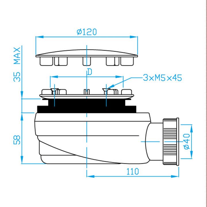 EWCN942 Сифон для душевого поддона PLASTBRNO 90/40 хром, НИЗКИЙ, изгиб 45° 40/50, фильтр