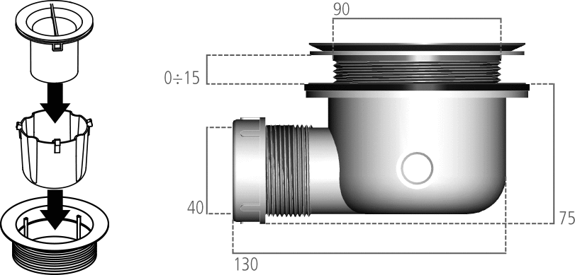 K936367 Слив для поддонов ULTRAFLAT S без декоративной накладки, серый верх