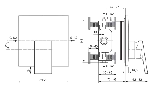 керамический картридж 47 мм, с функцией HWTC (ограничение максимальной температуры горячей воды),