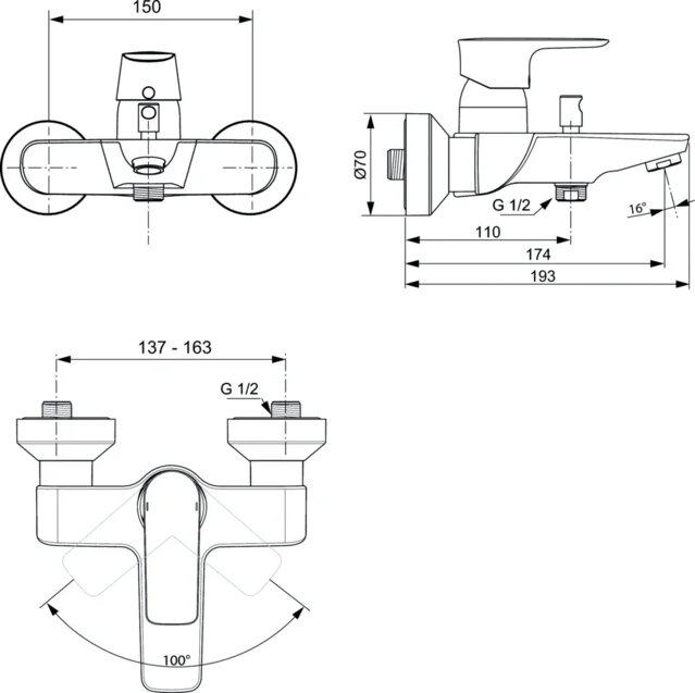 A7033AA CONNECT AIR Смеситель для ванны/душа, керам. картридж 40 мм с функцией HWTC, хром