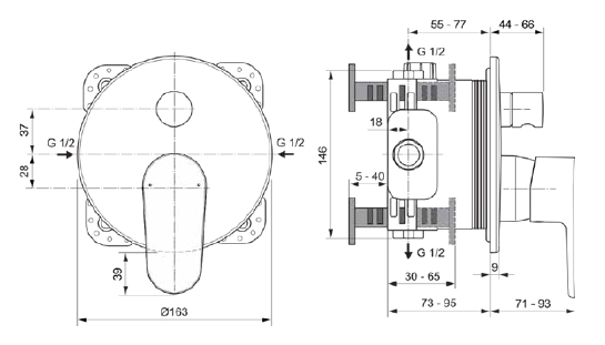 картридж 47 мм с функцией HWTC (ограничение максимальной температуры горячей воды),
