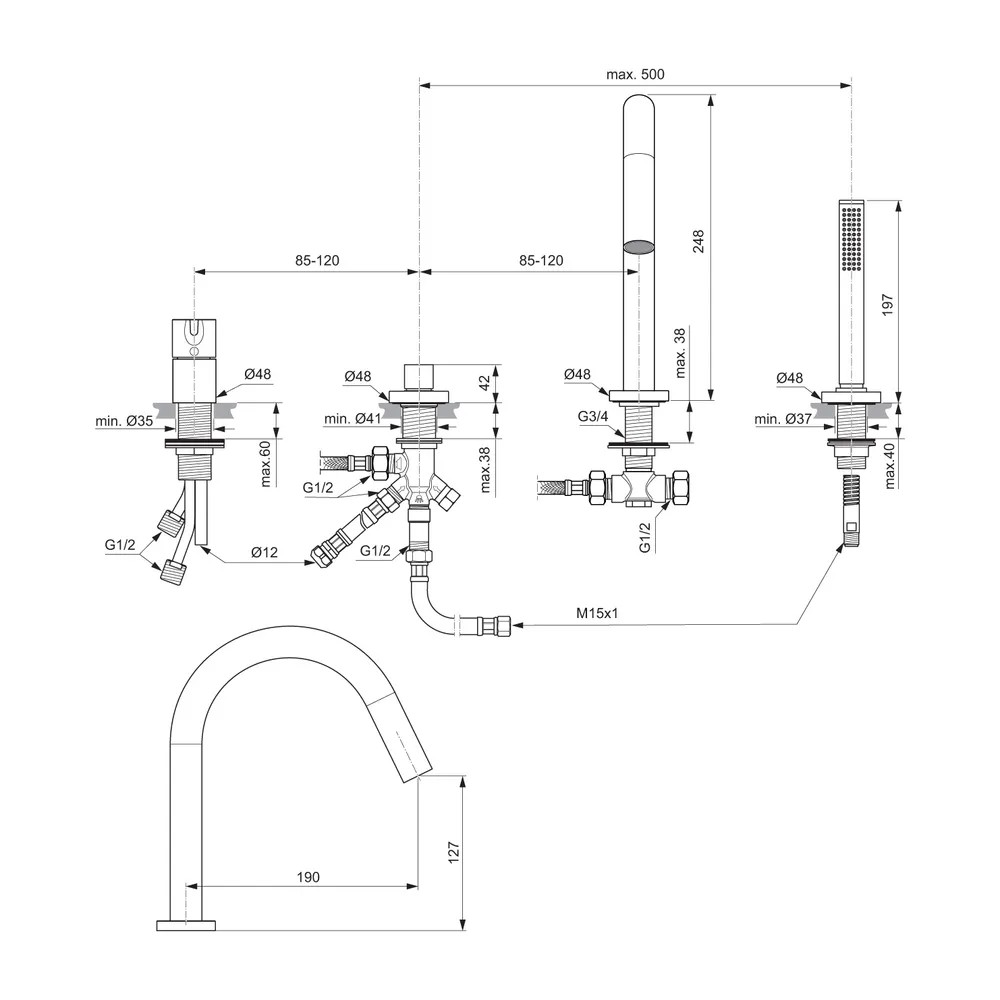 BC789A5 JOY Набортный смеситель для ванны/душа под 4 отверстия,