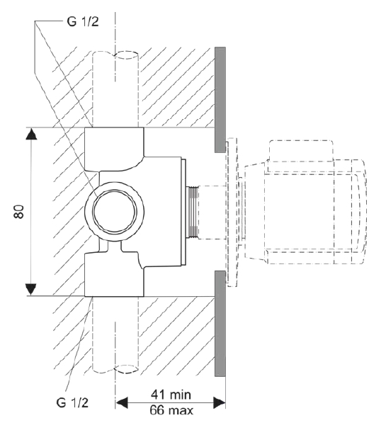 A2391NU Многоходовой переключатель, встраиваемая часть G1/2", тип 3/4 (1 вход, 3 выхода), латунный
