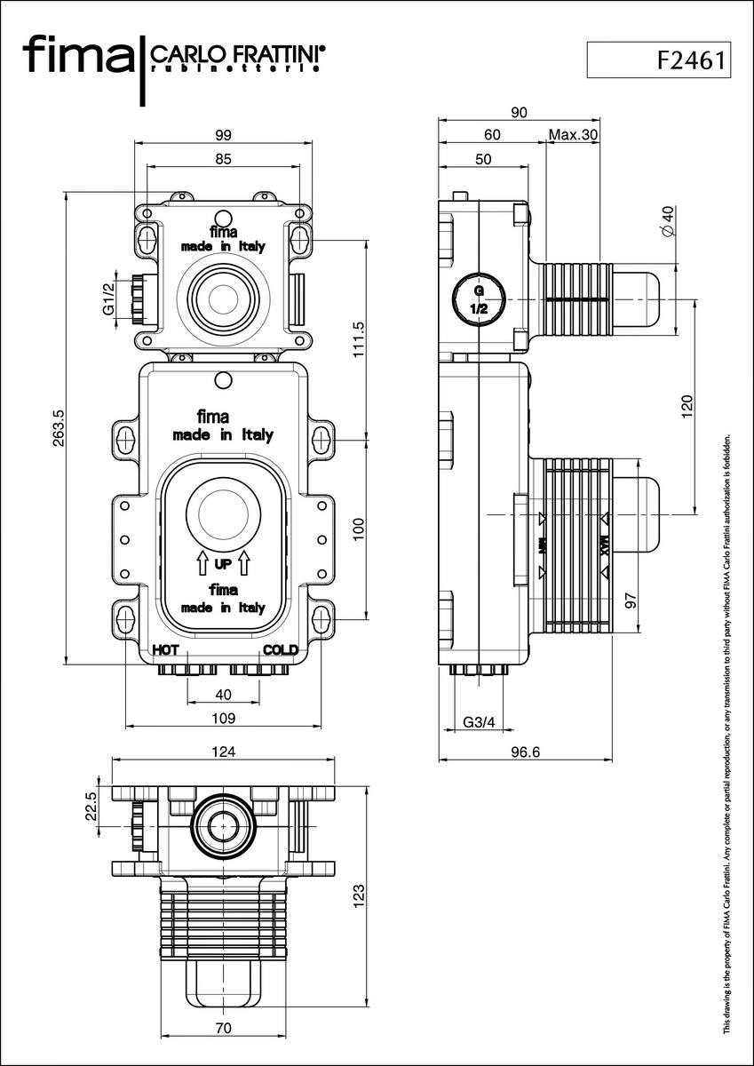 F2461 Встраиваемая часть термостатического смесителя Fima Carlo Frattini, на 1 вывод