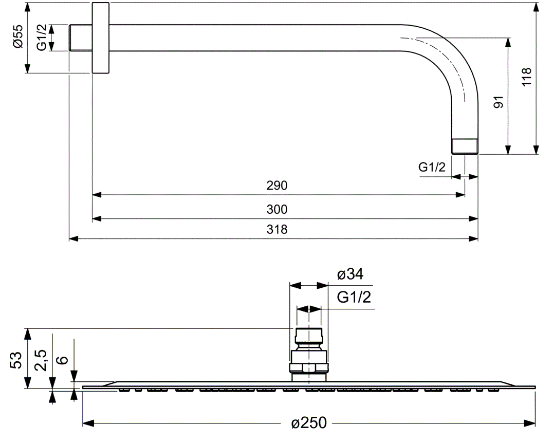B0384MY IDEALRAIN LUXE Круглый верхний душ Ø250 мм,