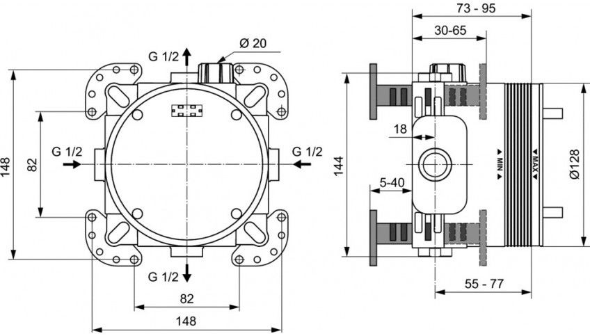 A7302AA CERATHERM NAVIGO Встраиваемый термостатический смеситель для душа, комплект №2,