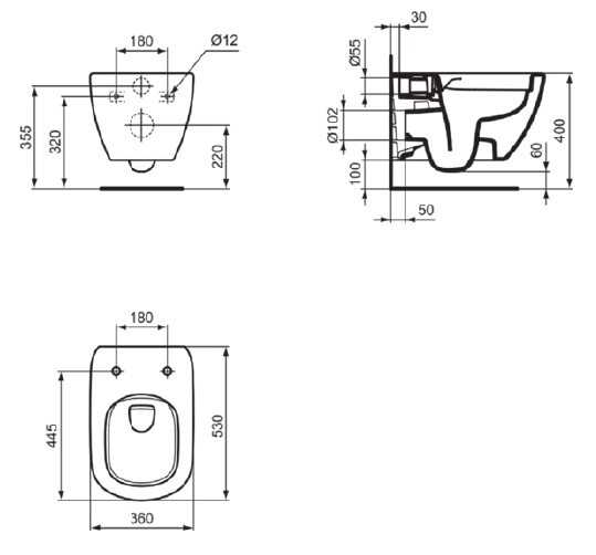 T4932V3 TESI Rimless+ Безободковый подвесной унитаз, глубокий смыв, сиденье и крышка T5521 или T5522 или T5523 или T5524 заказывается дополнительно, с крепежом для полностью скрытого монтажа,