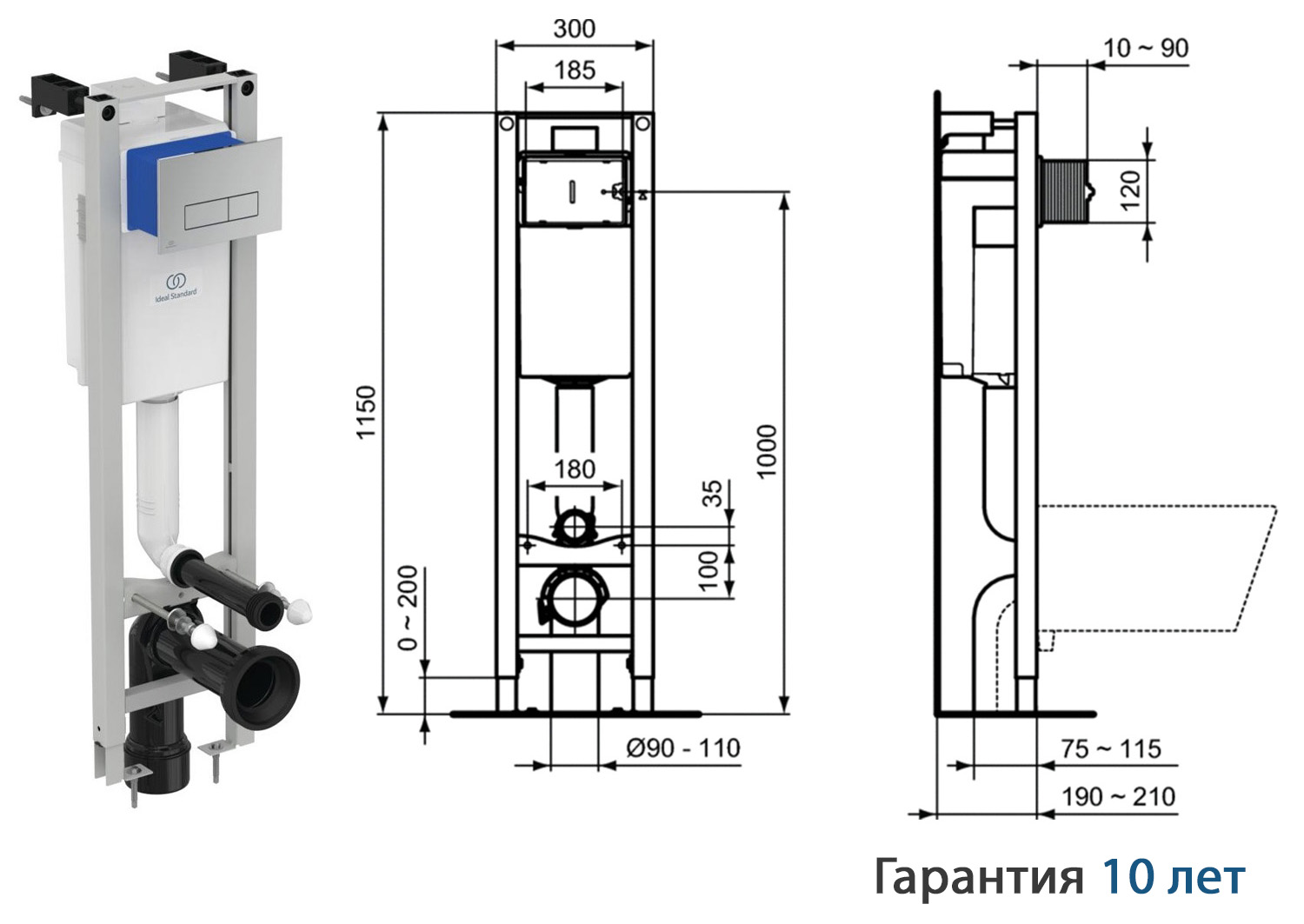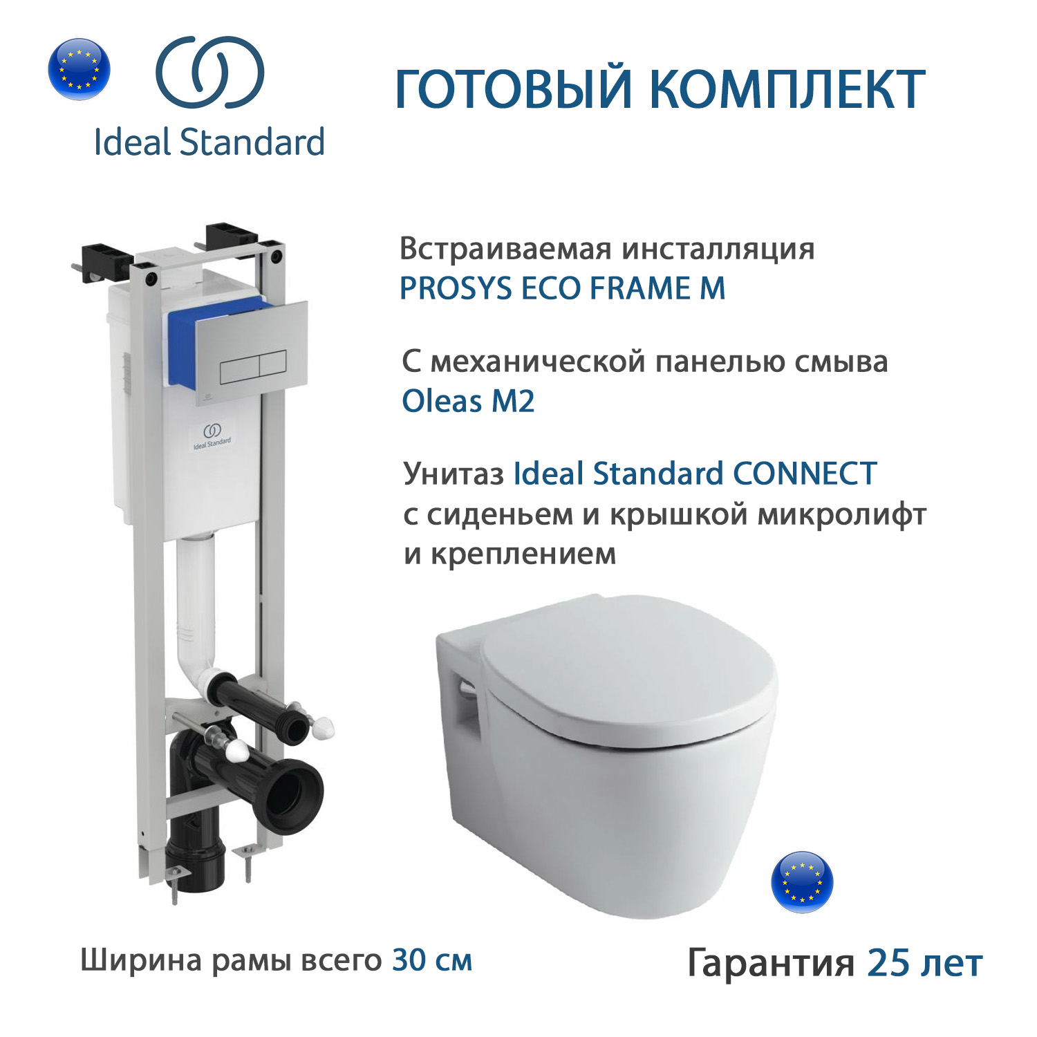 W22001AA Промо-комплект CONNECT 4 в 1, состоящий из E803501 Унитаз подвесной, E712701 Крышка-сиденье, E2332AA Встраиваемая инсталляция с механической панелью смыва Oleas M2 R0121AA NEW